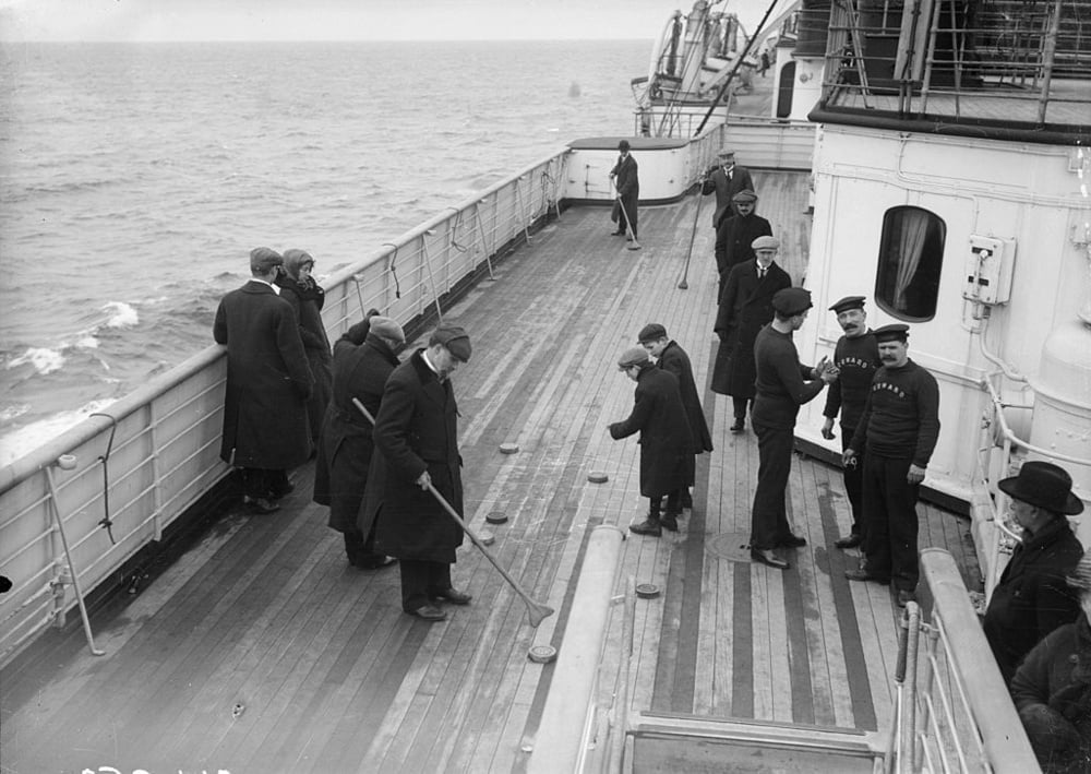 The Titanic’s choice of entertainment included shuffleboards, a favorite among the elderly today, owing to its long-standing tradition. Among its passengers was 17-year-old John D. ‘Jack’ Thayer, who, unlike his mother, faced the icy waters when the ship sank, eventually finding safety.